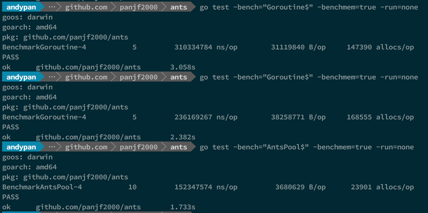 • BenchmarkPoolGroutine-4 represent the benchmarks with a ants pool.